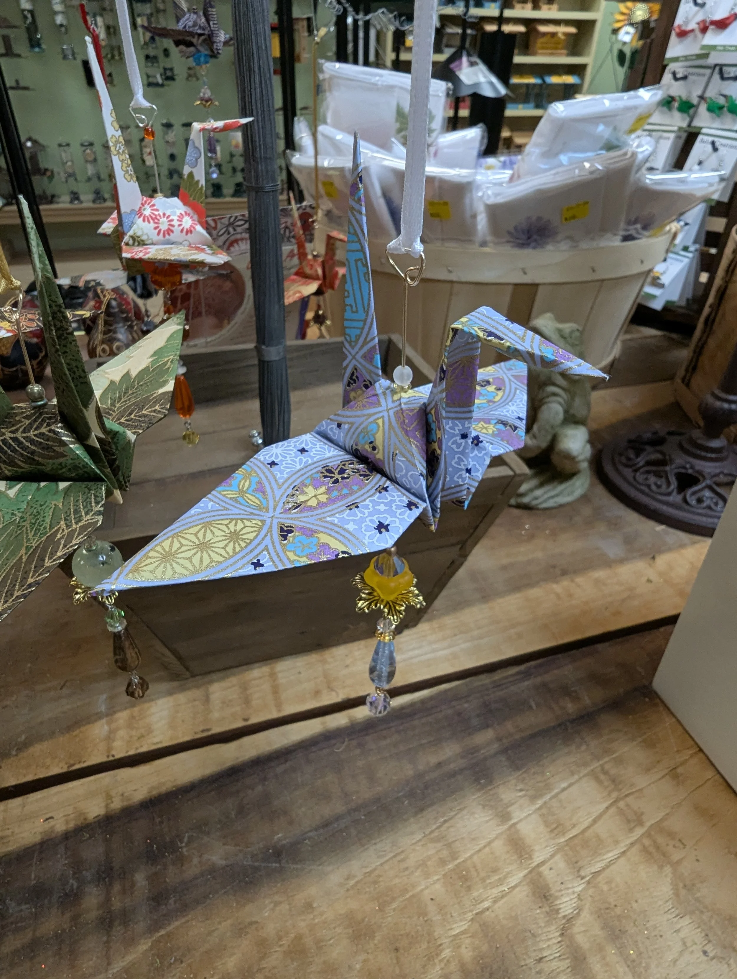 Are you looking for an ornament that is unique and produced locally by hand? Lydia Wilson, a longtime customer of ours, produces beautiful hand folded origami cranes made with unique papers as well as crystals to really catch both the light and the eye. If you are wanting a unique ornament from a local artist that is sure to be the highlight of your tree, look no further than these!