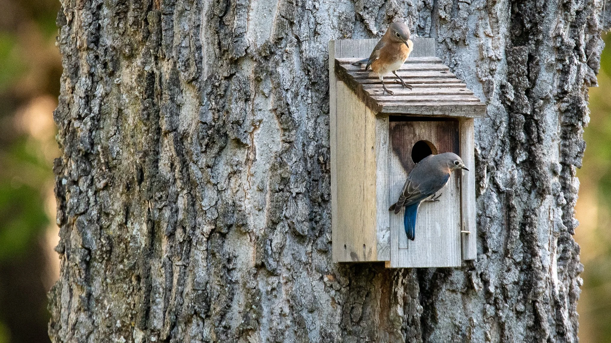 Bluebirds Exploring Boxes
